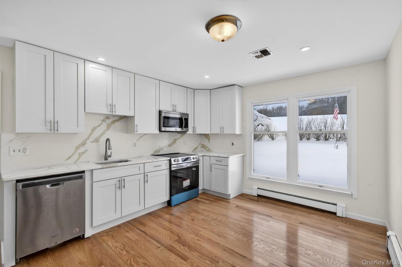 Beautifully renovated ranch set on a peaceful 1.8 Acre property in the sought-after Minisink Valley School District. This spacious 3-bedroom, 4-bath home blends classic charm with modern updates throughout.Inside, refinished hardwood floors, 2 fireplaces, and large windows fill the home with warmth and natural light. The brand-new kitchen features white shaker cabinetry, quartz countertops, and stainless steel appliances-perfect for everyday living and entertaining. Solar panels can be leased for lower electric bill or removed from roof, buyer's choice.The finished walkout lower level offers a private entrance, kitchen, and full bath, ideal for an in-law or guest suite. Outside, enjoy a circular driveway, ample parking, and a large deck with gazebo overlooking serene countryside views. Close to Middletown shopping and dining, and close to major roads for commuting.